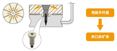 以往难以用夹钳或侧面固定夹具夹紧的工件,通过夹紧孔的内径从而让操作变得更为简便。