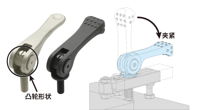 凸轮手柄因其只需按下手柄即可夹紧,比起旋拧螺栓可有效缩短作业时间。