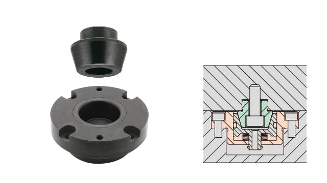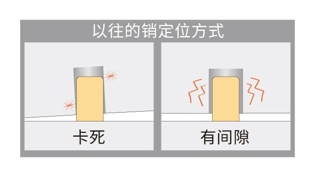 使用以往的直柱销・菱型销形式进行定位时,若配合公差设定过于严格,拆卸时容易发生卡死现象从而影响操作。