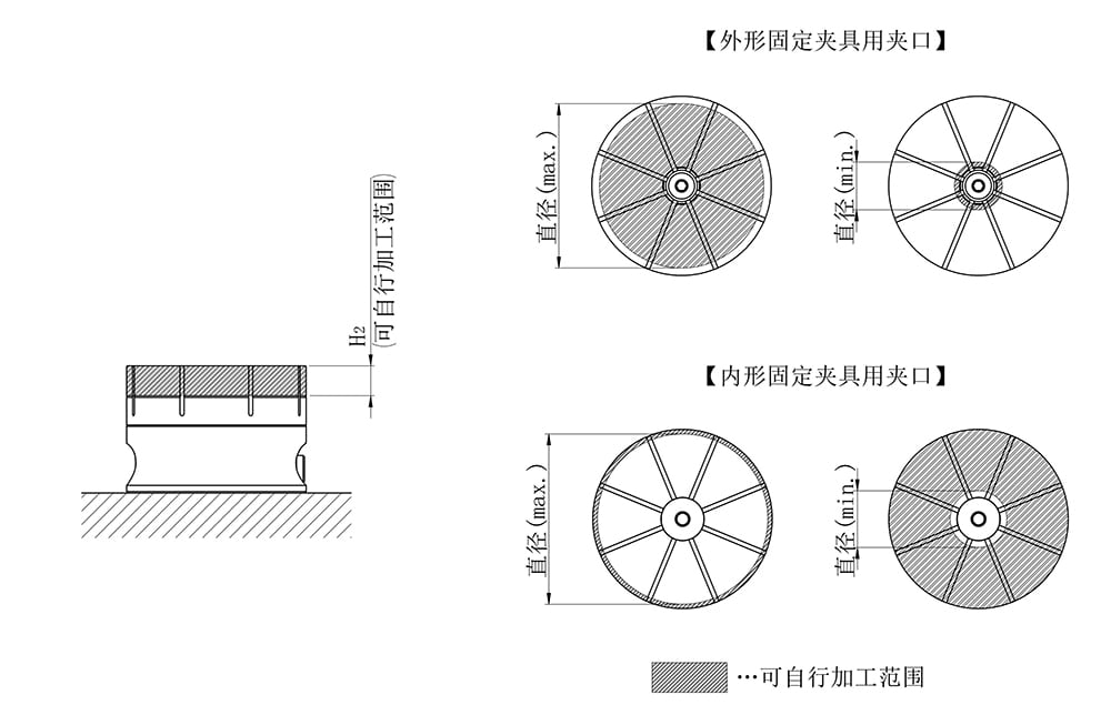直径方向的可自行加工范围(Min.~Max.),请参照下表。